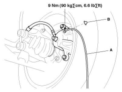 5. Pump the brake pedal several times, and then loosen the bleeder screw until fluid starts to run out without bubbles. Then close the bleeder screw.