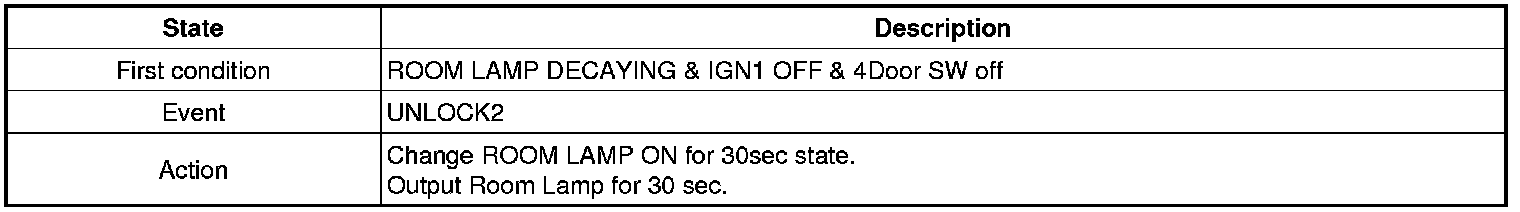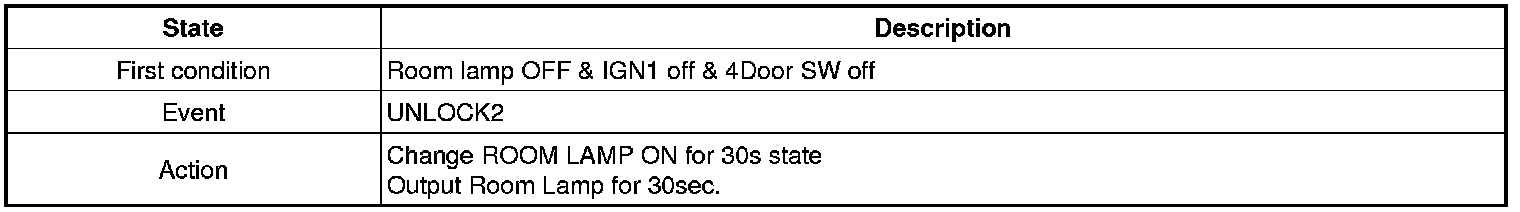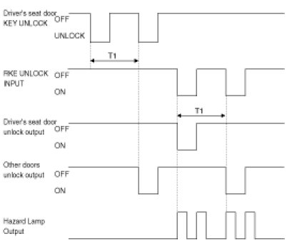 (5) If In side 0.5 sec DOOR LOCK SW became LOCK form DOOR(DR or PASSENGER) Open -> Close at IGN KEY IN state, output UNLOCK for 1sec.