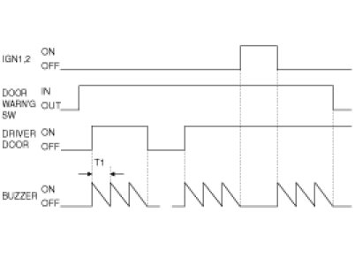 (1) When the driver's door is opened with IGN OFF and IGN KEY inserted in KEY CYLINDER (DOOR WARNING SW ON), BUZZER output occurs as 0.7 seconds cycle DUTY 50%.