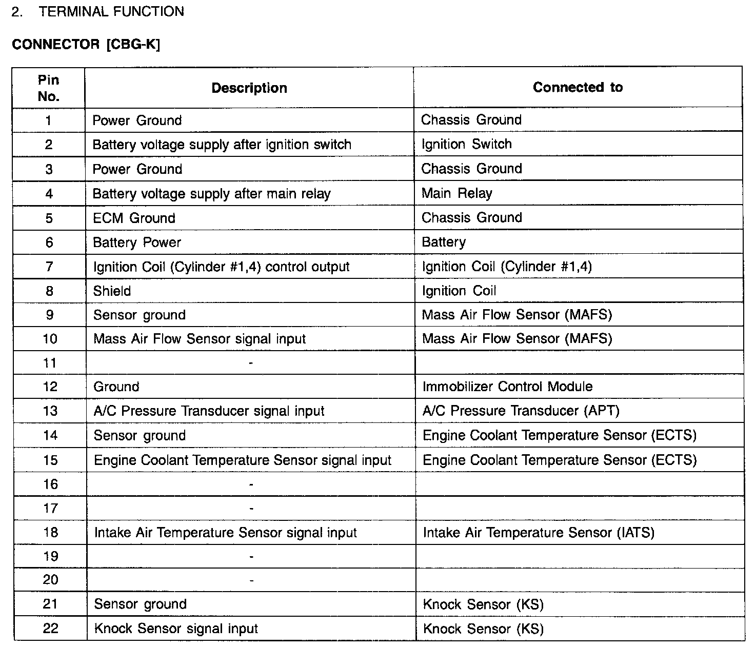 ECM Terminal Function - Connector [CBG-K] (Part 2):
