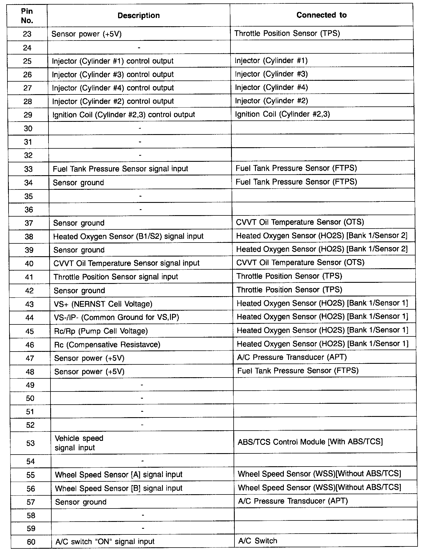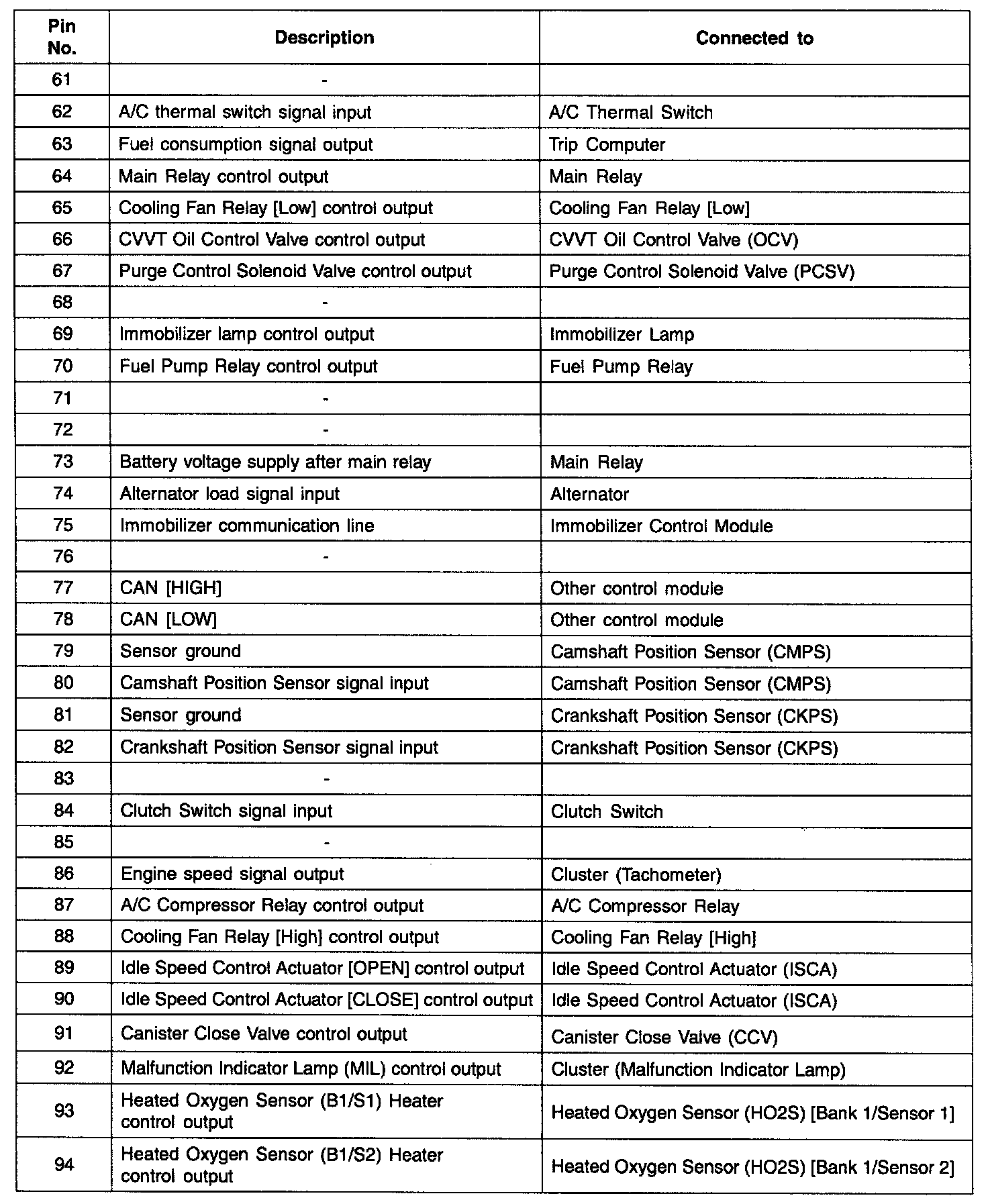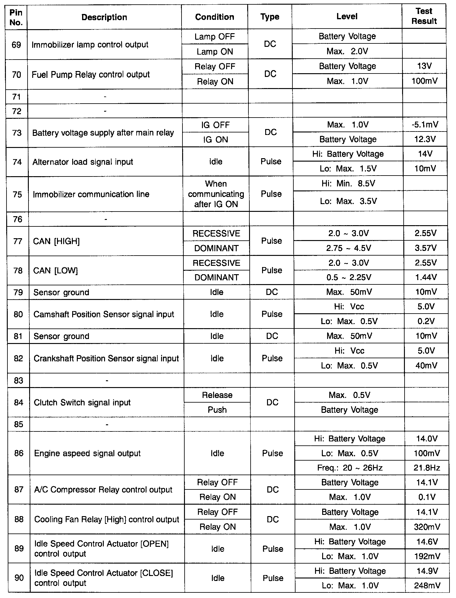 ECM TERMINAL INPUT/OUTPUT SIGNAL - CONNECTOR [CBG-K]