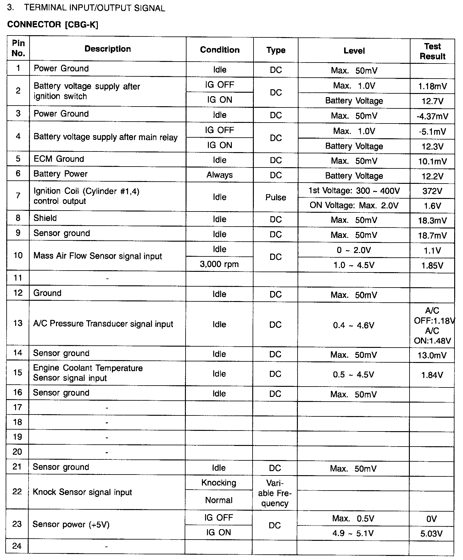 ECM Terminal Input/Output Signal - Connector [CBG-K] (Part 3):