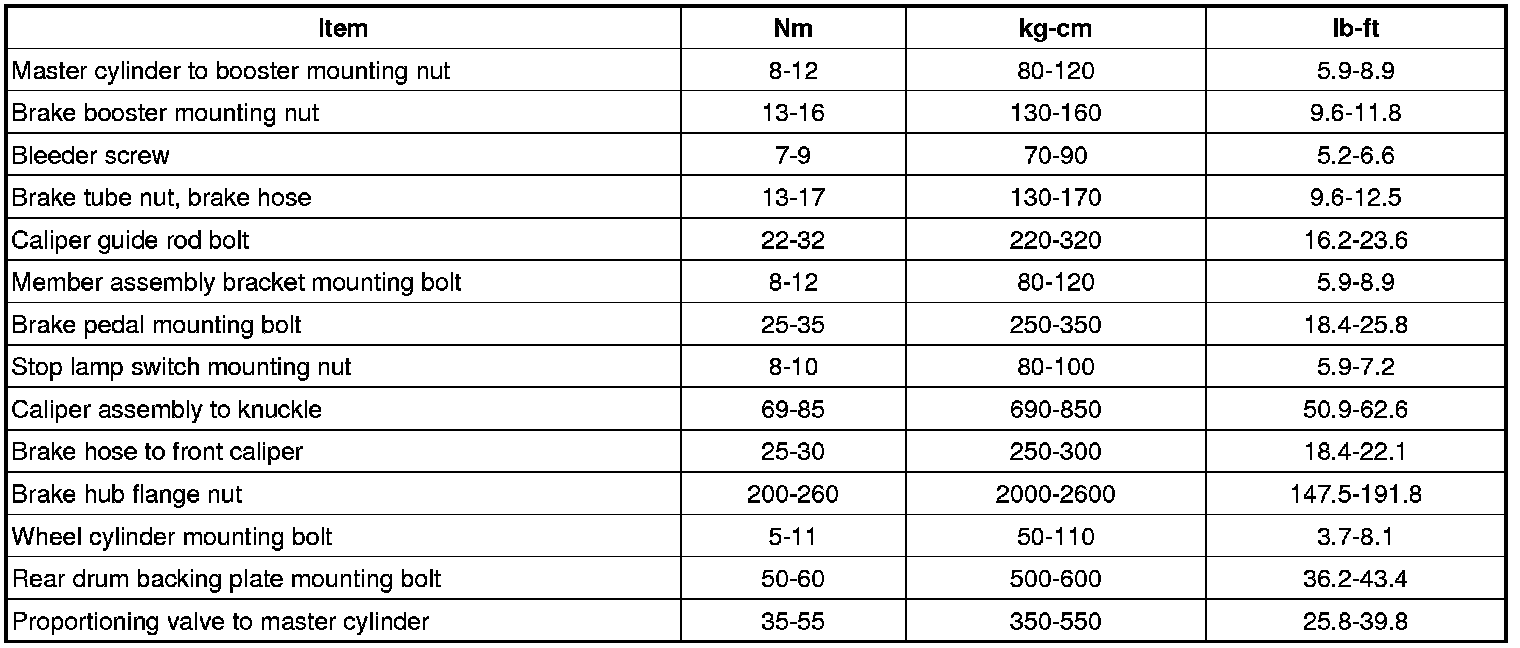 TIGHTENING TORQUE(Brake)