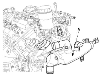 3. Disconnect radiator upper and lower hose(A).