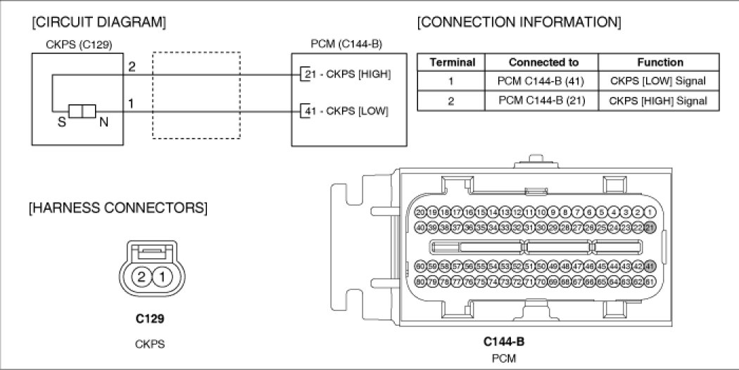 Crankshaft Position Sensor (CKPS) detects the crankshaft position and is one of the most important sensors of the engine control system. If there is no CKPS signal input, fuel is not supplied and the main relay does not operate. That is, vehicle can't run without CKPS signal. This sensor is installed on transaxle housing and generates alternating current by magnetic flux field which is made by the sensor and the target wheel when engine runs. The magnetic flux increases when the protrusion of the target wheel is getting near to the sensor and does not change in the most close position. When the protrusion becomes estranged from the sensor, magnetic flux disappears and alternating current is generated. The target wheel consists of 58 slots and 2 missing slots on 360 CA (Crank Angle).