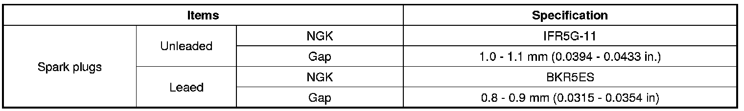 Spark Plug: Specifications