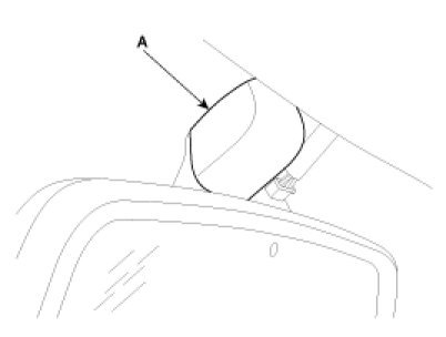 1. Push the inside rear view mirror base (A) down to remove to inside rear view mirror assembly (B).
