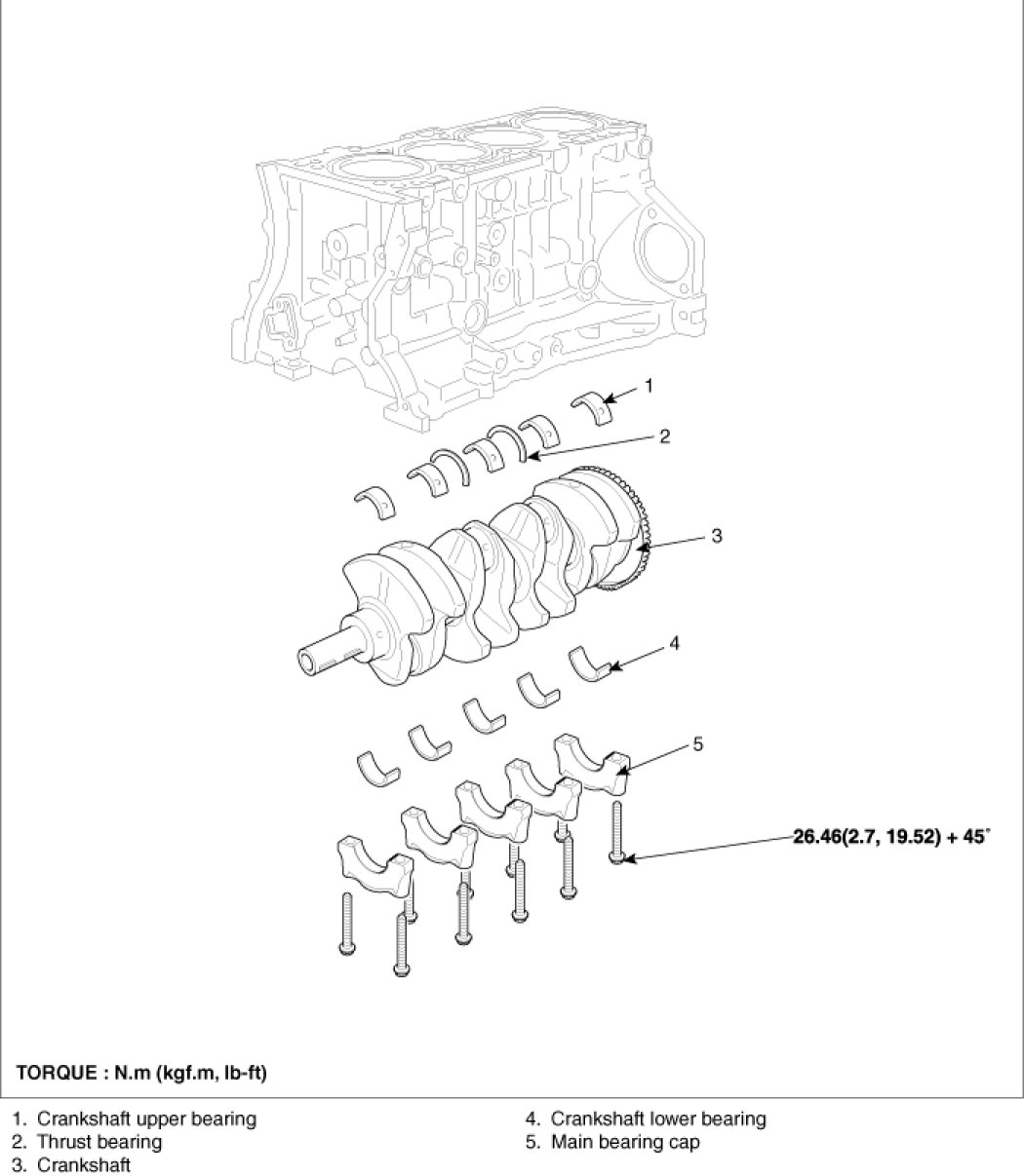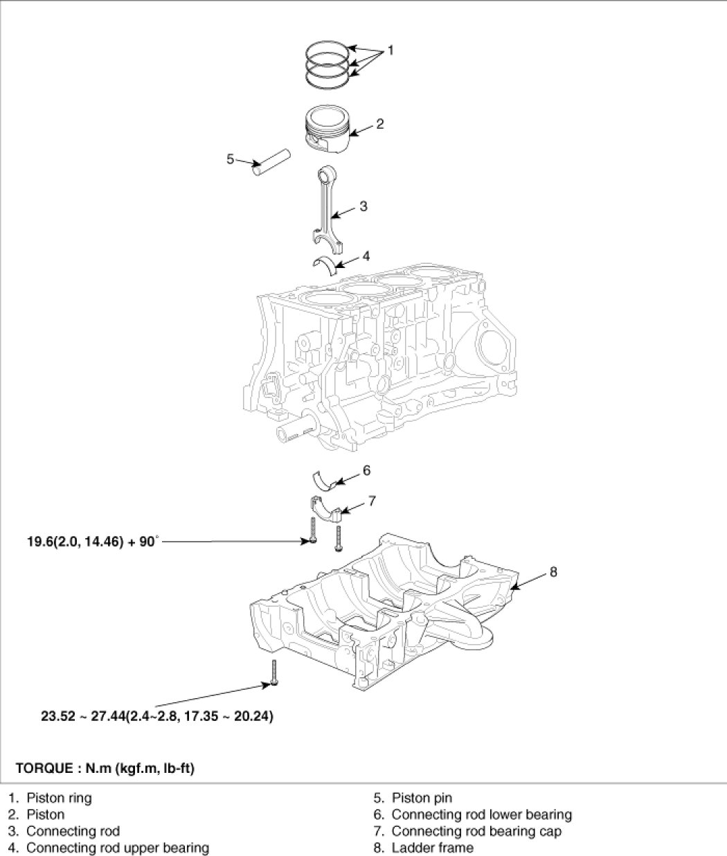 (2) Push the piston, connecting rod assembly and upper bearing through the top of the cylinder block.
