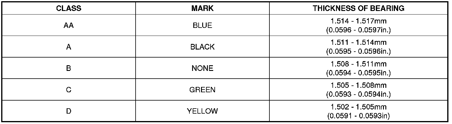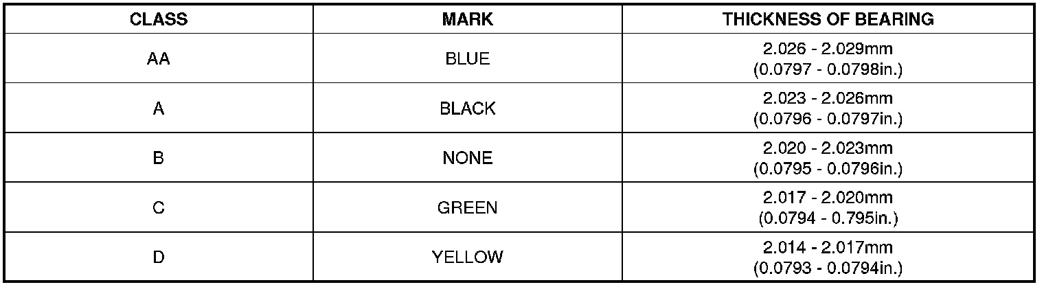(10) If the Plastigage shows the clearance is still incorrect, try the next larger or smaller bearing (the color listed above or below that one), and check clearance again.