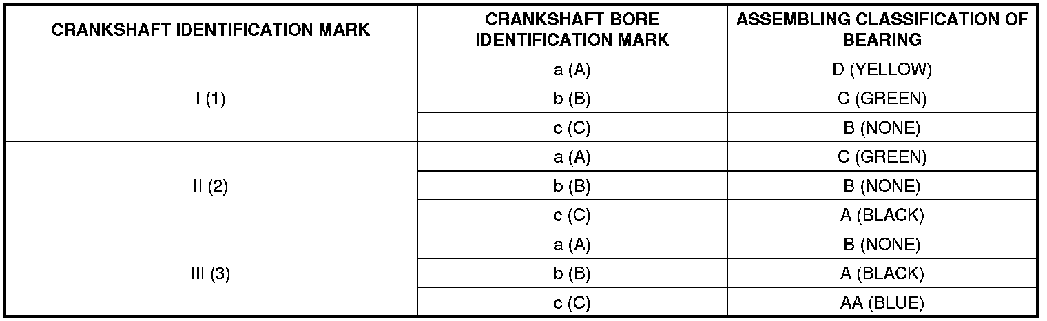 Place of identification mark (Crankshaft bearing) Discrimination of crankshaft bearing
