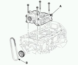 6. Remove balance shaft chain (B) and balance shaft module (A).