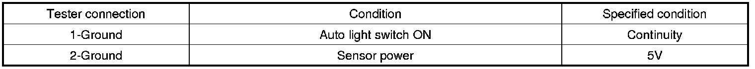 5. If the measured resistance is not within specifications, substitute with a known-good auto light sensor and check for proper operation.