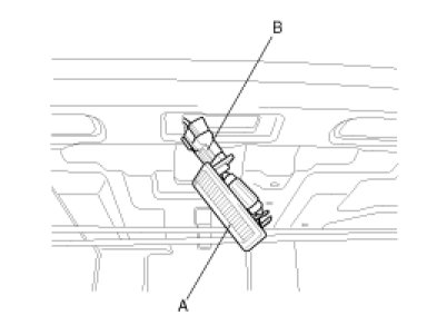 2. Open the trunk lid, then remove the trunk room lamp (A) with a flat-tip screwdriver and disconnect the 2P connector (B).