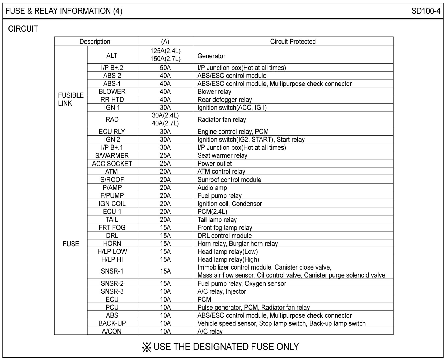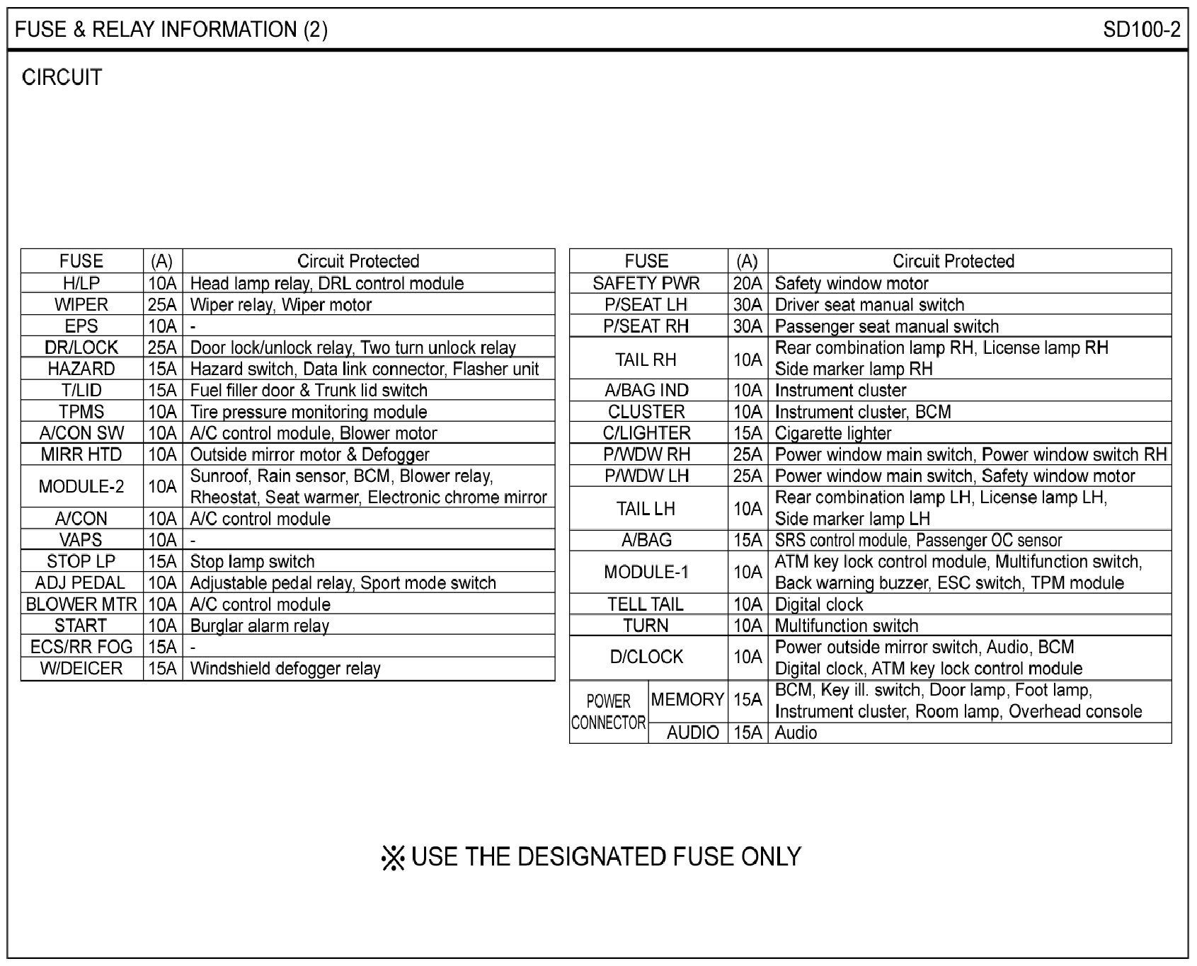 FUSE & RELAY INFORMATION