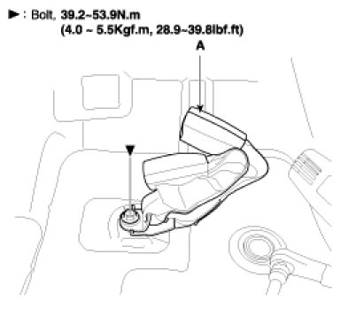 2. After raise the lower anchor cover (A), loosen the lower anchor mounting bolt (B).