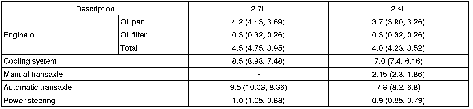 Capacities : [liter (U.S.qts, imp.qts)]