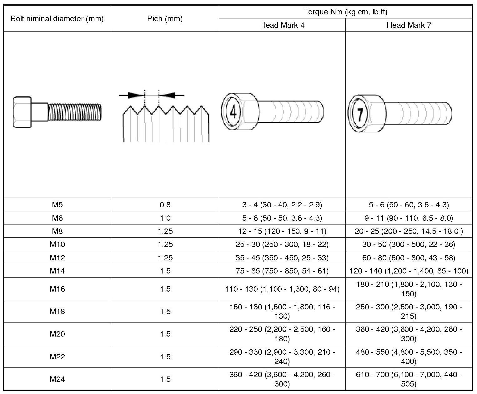 General Torque Specifications