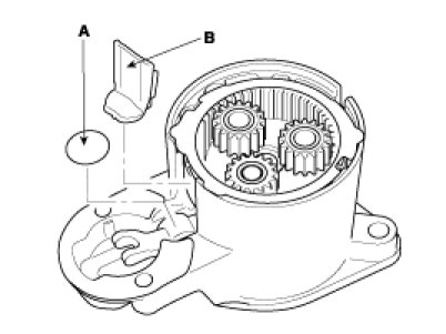 8. Disconnect the planet shaft assembly (A) and lever (B).