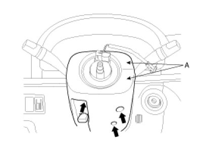 1. Remove the steering column upper and lower shrouds (A) after removing 3 screws.