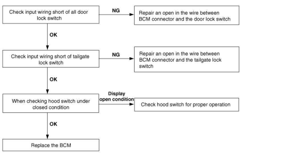 7. Central door lock function works, but keyless entry system does not work.