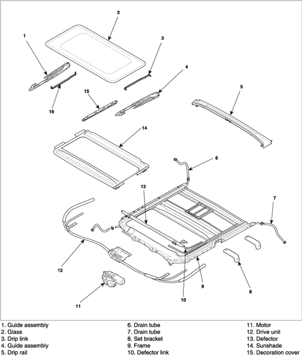 1. Remove the sunroof assembly.