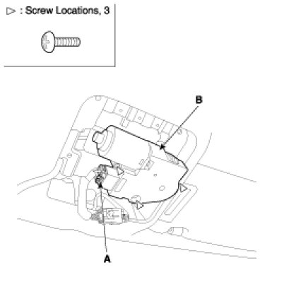 2. Disconnect the motor connector (A), remove the screws and then remove the motor (B).