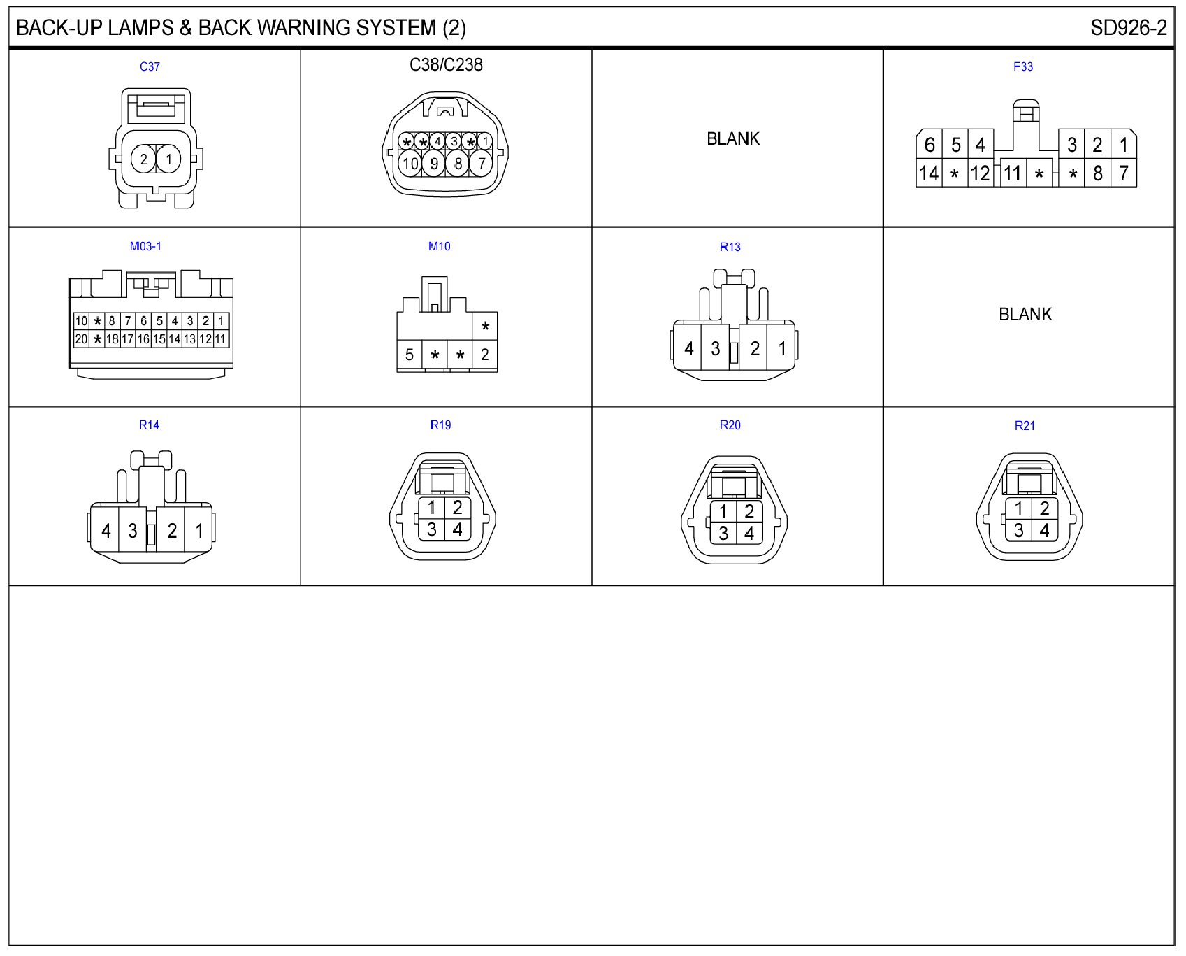 Back-Up Lamps & Back Warning System Connector Pin Outs: