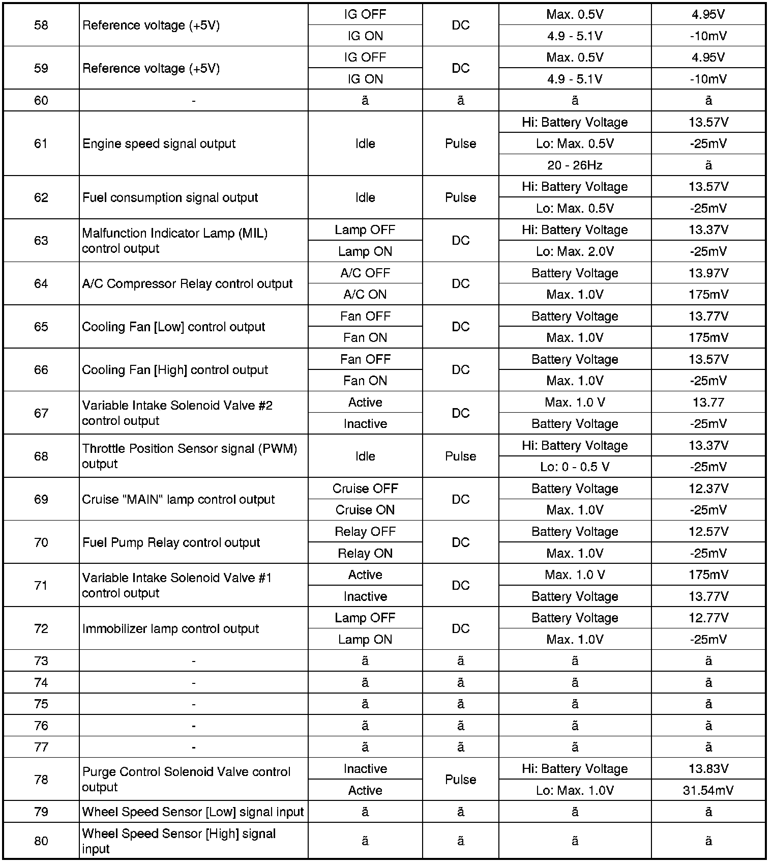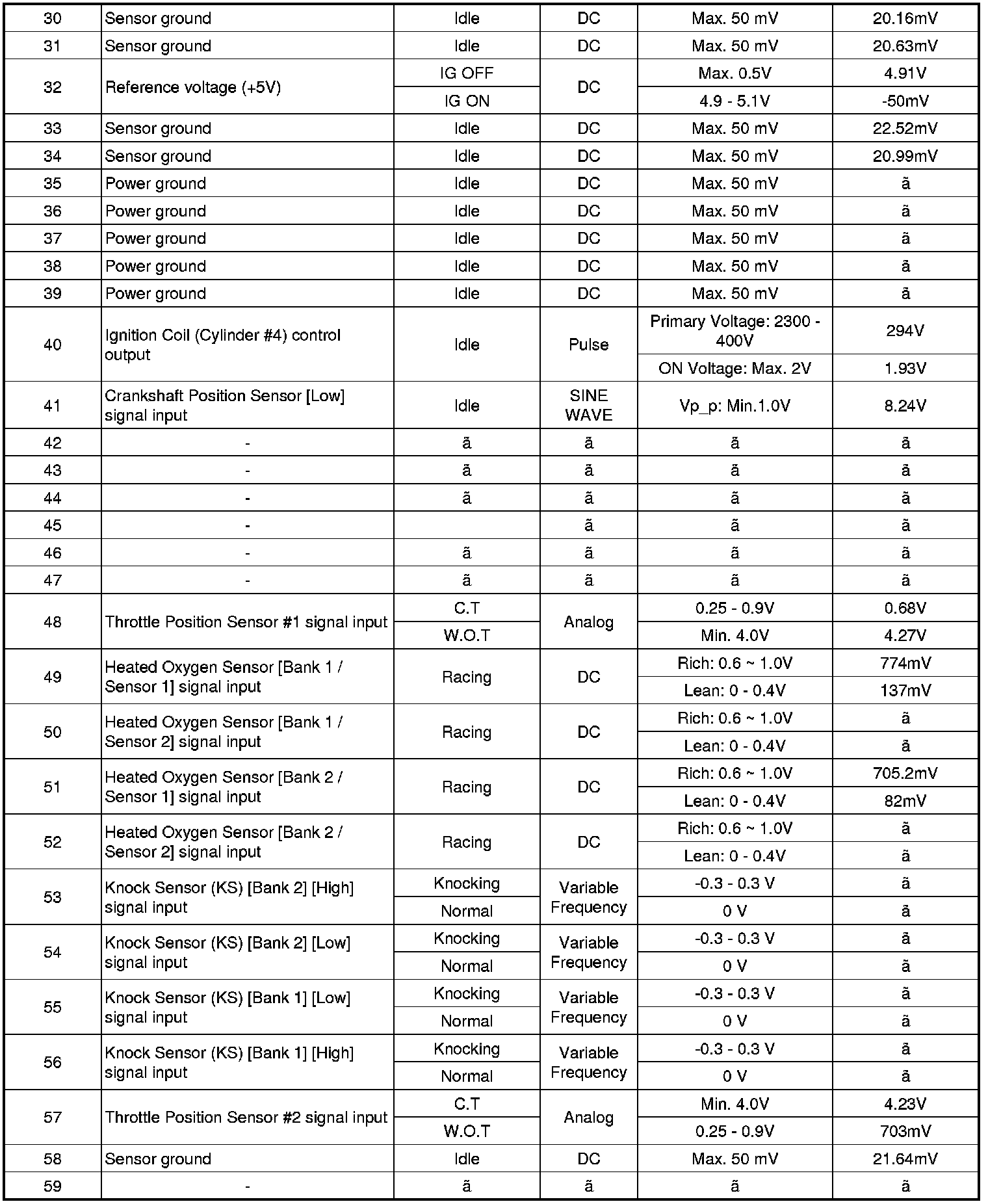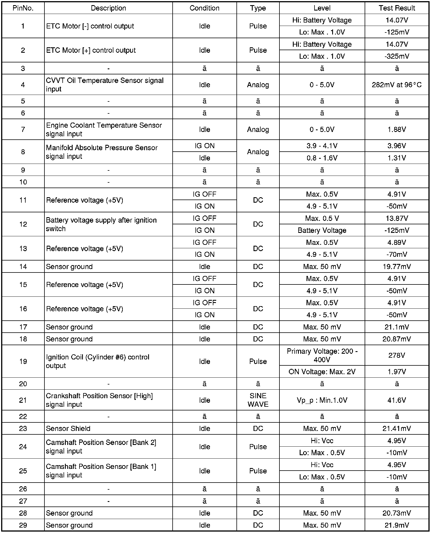 Pinout Values and Diagnostic Parameters