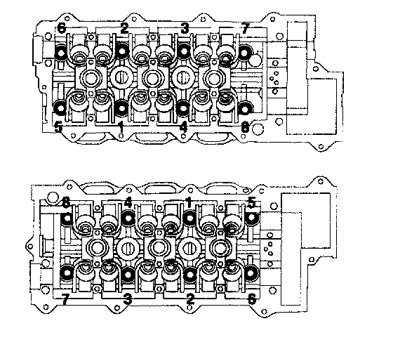 Cylinder Head Torque and SequenceTighten the cylinder head bolts with the plain washers in several steps as following order.