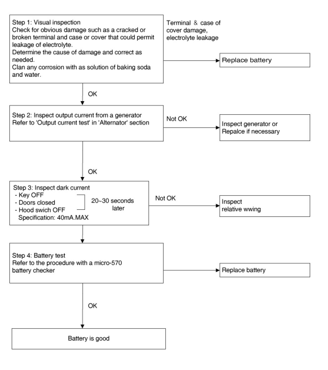 4. Inspect the battery tray for damage caused by the loss of electrolyte. If acid damage is present, it will be necessary to clean the area with a solution of clean warm water and baking soda. Scrub the area with a stiff brush and wipe off with a cloth moistened with baking soda and water.
