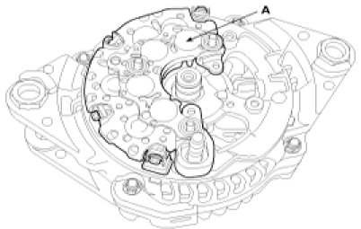 2. Disconnect the generator connector, and remove the cable from generator "B" terminal.