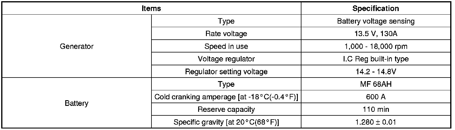 Starting and Charging: Specifications
