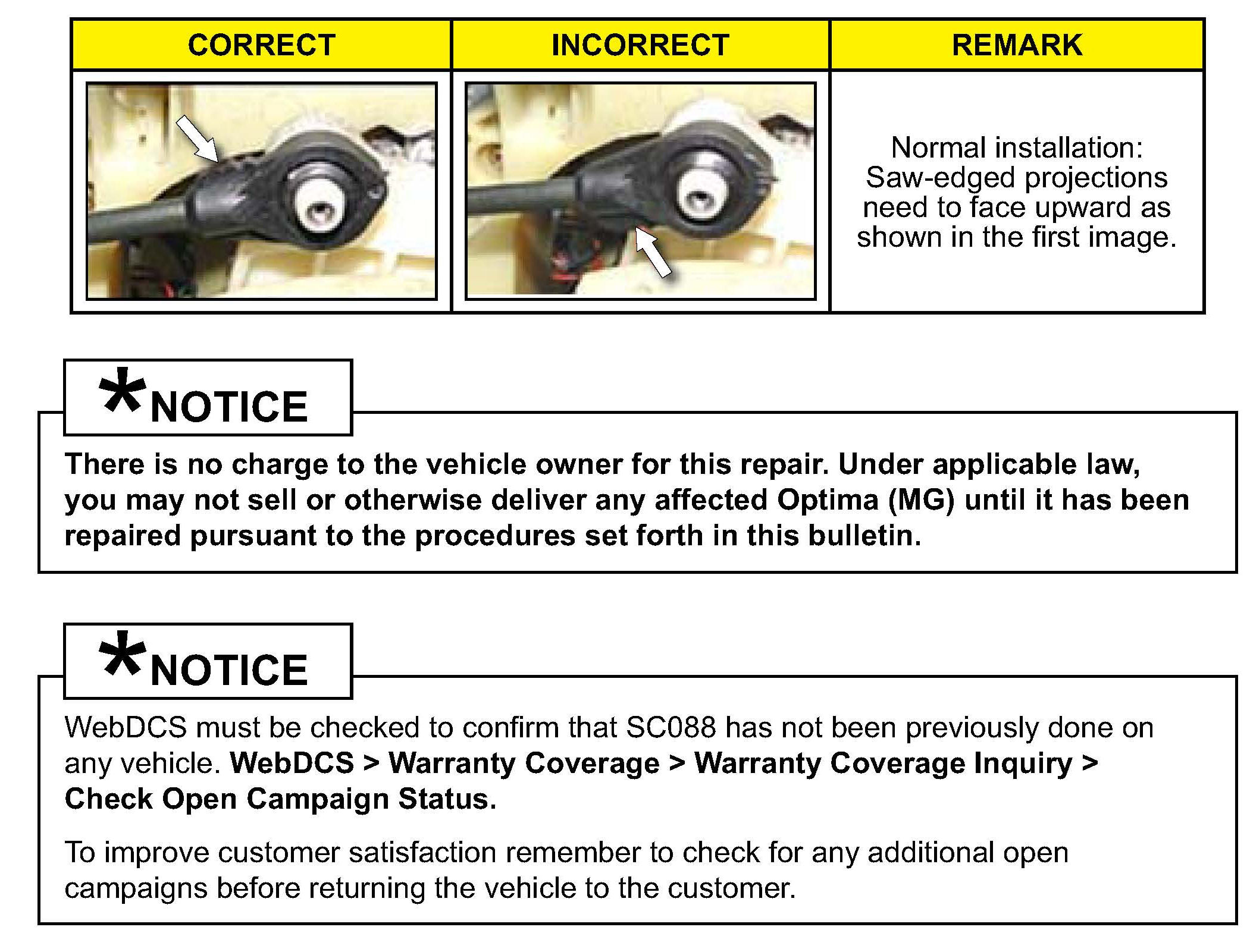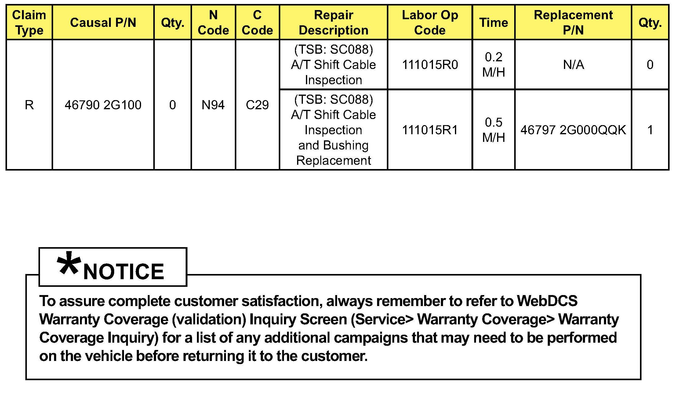 SERVICE CAMPAIGN WARRANTY CLAIM INFORMATION:
