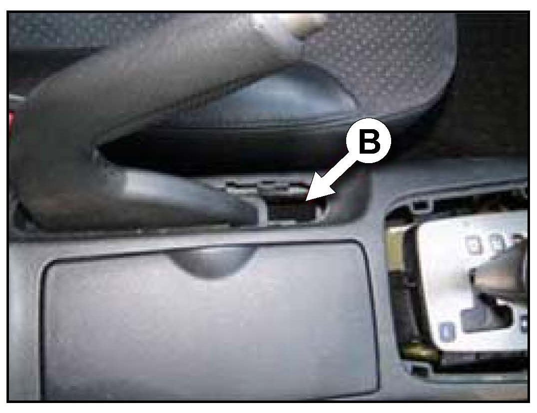3. Remove the parking brake cover (B).