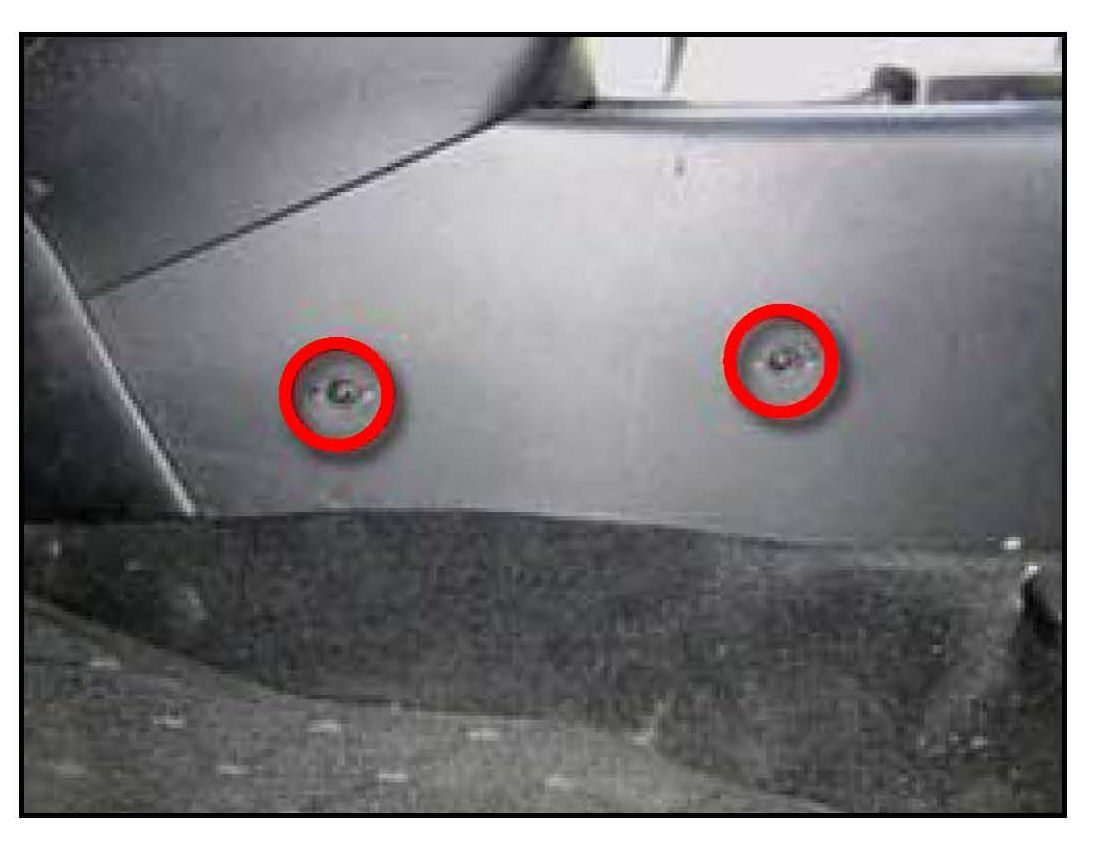 4. Remove the console mounting screws as indicated by the circles.