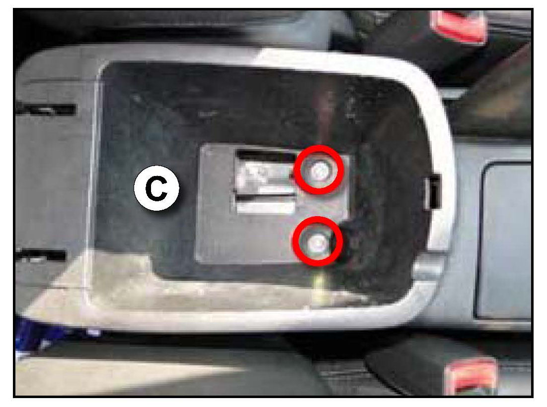 5. Remove the console mounting bolts and then remove the floor console assembly (C).