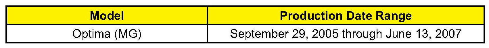 AFFECTED VEHICLE PRODUCTION RANGE: