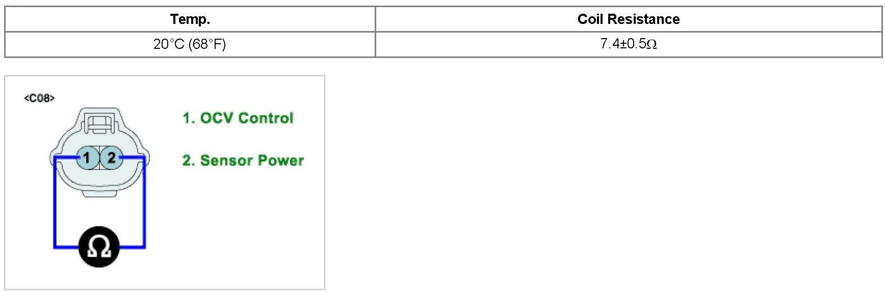 3. Measure resistance between terminal 1 and 2 of OCV harness connector. (Component Side)