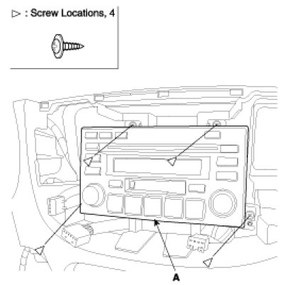 3. Disconnect the audio connector and antenna cable, then remove the audio assembly (A).