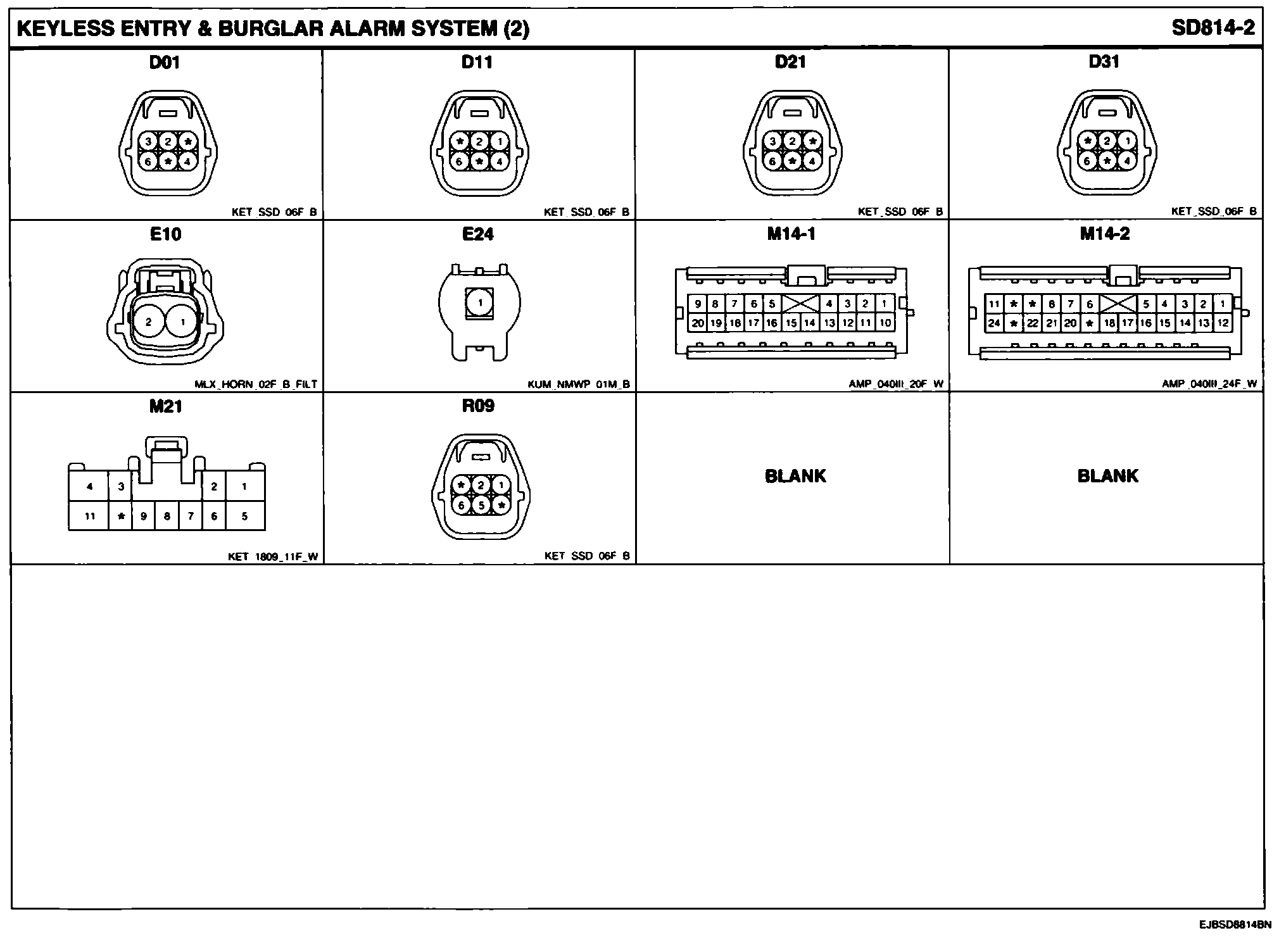 Keyless Entry & Burglar Alarm System Connector Pin Outs: