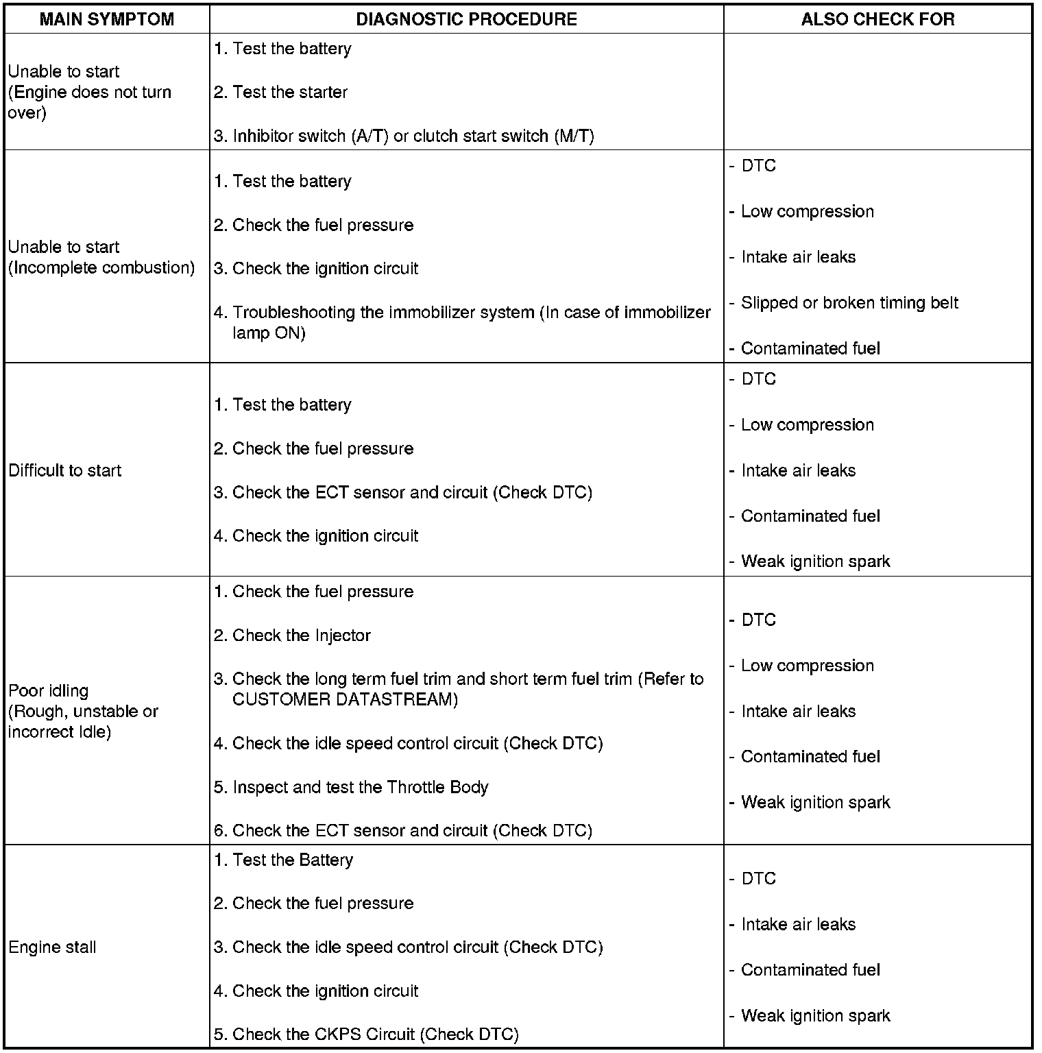 SYMPTOM TROUBLESHOOTING GUIDE CHART
