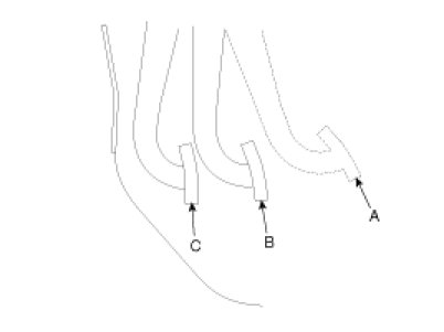 The rapidly-repeated operation of the clutch pedal in B-C range may disrupt the release cylinder's position. During the bleeding operation, press the clutch pedal to the floor after it returns to the "A" point.