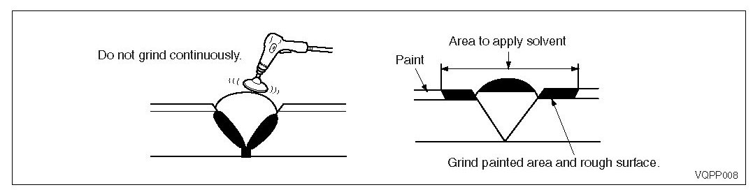 4. Grind polypropylene surface carefully. It melts easily due to the heat generated by friction. If melted, remove that area. Also, grind the area where solvent is to be applied.