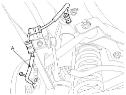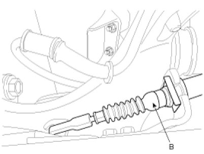8. Install the wheel speed sensor (A) and parking brake cable (B).
