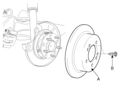 5. Install the rear brake disc assembly (A) and tighten screw (B).