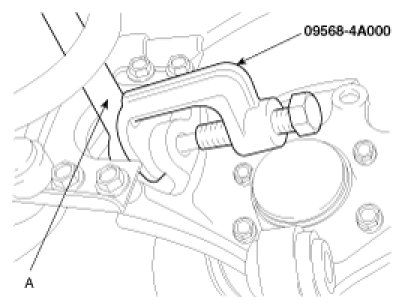 12. Using the SST (09568-4A000), disconnect the assist arm (A) from the carrier assembly.