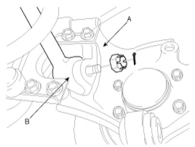 7. Install the upper arm (B) from the carrier assembly , then tighten the nut (A).