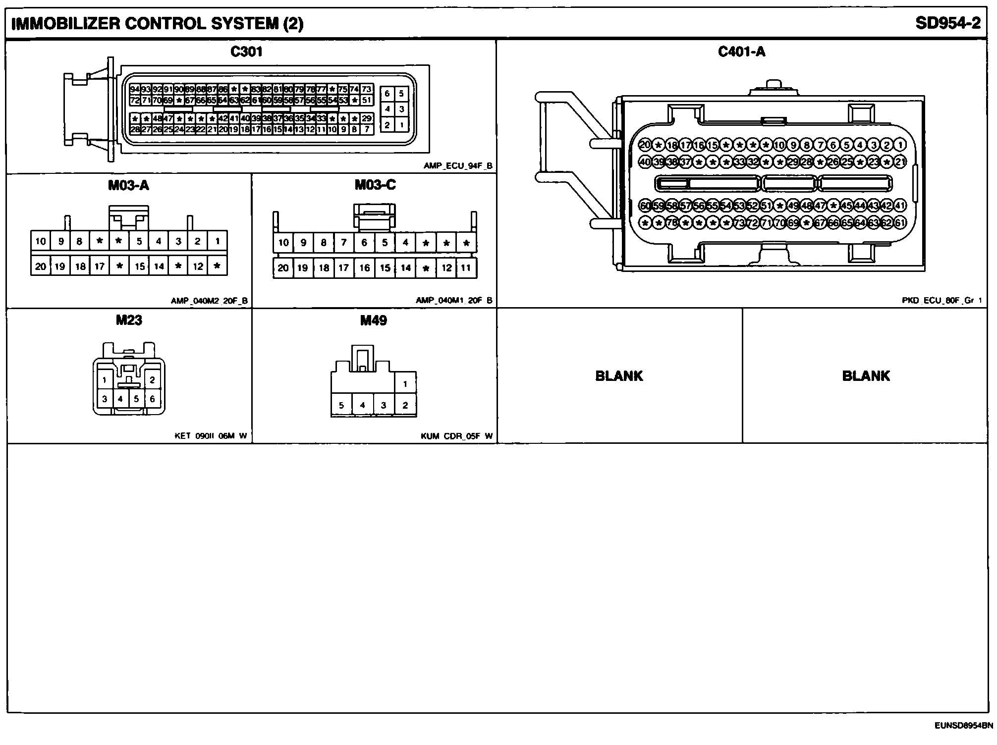 Immobilizer Control System Connector Pin Outs:
