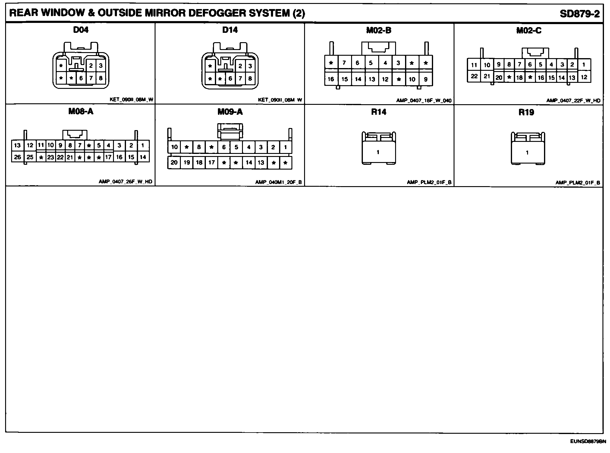 Rear Window & Outside Mirror Defogger System Connector Pin Outs: