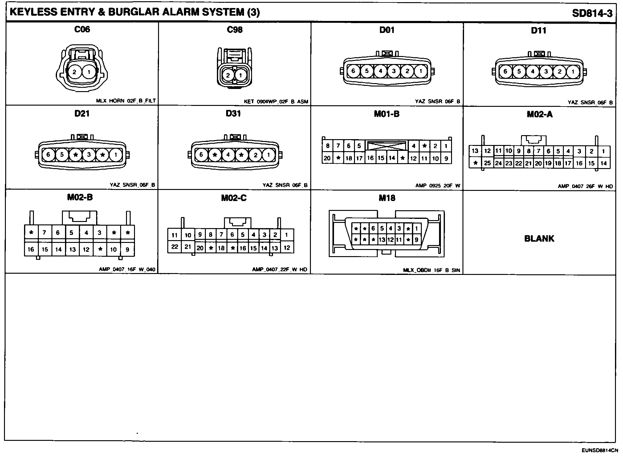 Keyless Entry & Burglar Alarm System Connector Pin Outs: